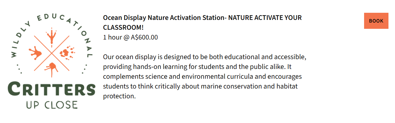- Where do you operate?We offer our ocean classroom display across Perth and regional WA. Additional travel fees may apply for remote areas.